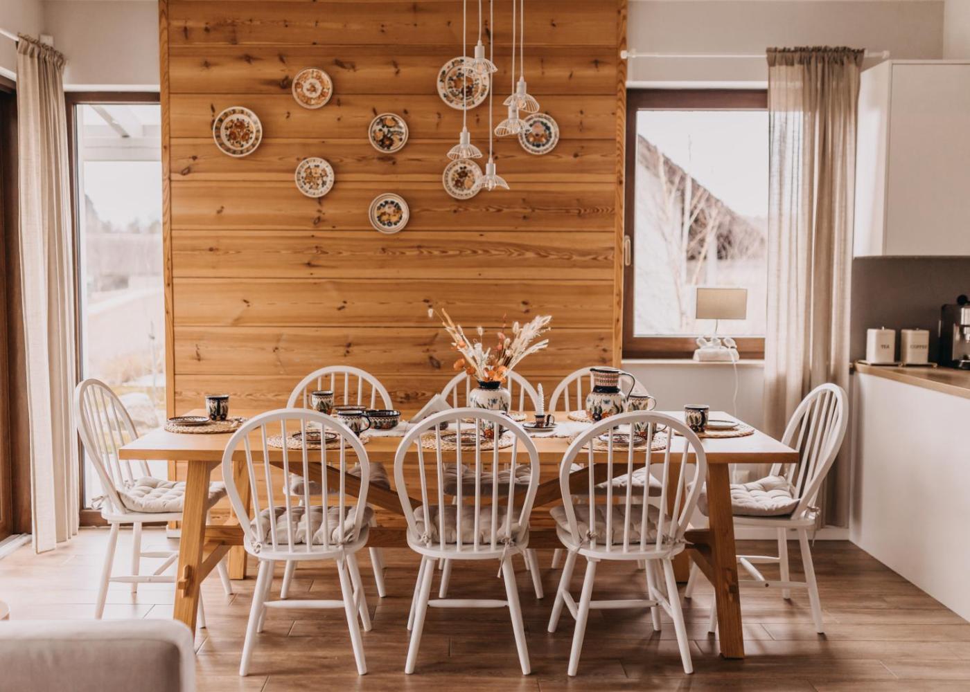 Dom wakacyjny. This holiday home offers a fireplace. Guests will find a stovetop, a refrigerator, a dishwasher and kitchenware in the well-fitted kitchen. The holiday home also provides guests with a barbecue. The holiday home provides a washing machine, a private entrance, a terrace with garden views as well as a shared bathroom featuring a shower. The unit offers 5 beds. Dom wakacyjny - 8 osobowy. Powierzchnia pokoju ok.: 100 mkw. ;