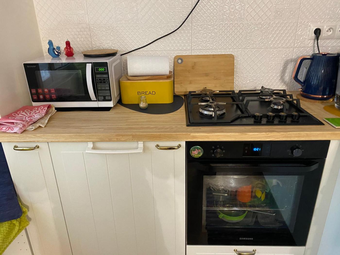 W apartamencie znajduje się podłoga wyłożona parkietem. Goście mają do dyspozycji sypialnię (1) oraz łazienkę (1) z bidetem, prysznicem i suszarką do włosów. Z okien roztacza się widok na miasto. Wyposażenie kuchni obejmuje lodówkę, piekarnik, mikrofalówkę, a także ekspres do kawy i czajnik.