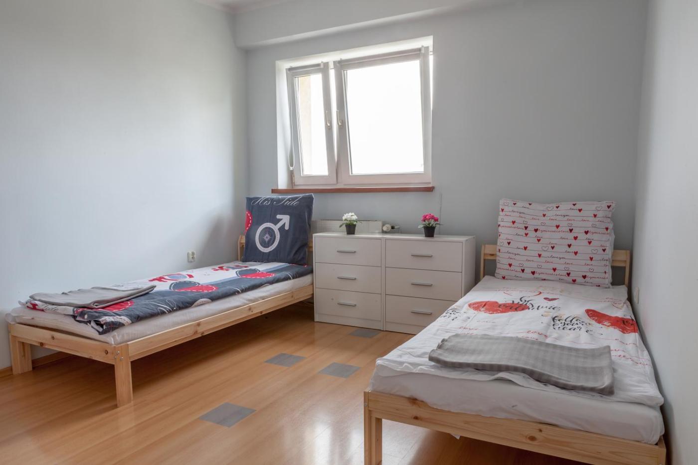 Apartament. This apartment comprises 3 bedrooms, a kitchen and 1 bathroom with a bath and a hairdryer. Meals can be prepared in the well-fitted kitchen, which comes with a stovetop, a refrigerator, a dishwasher and kitchenware. The apartment provides a washing machine, a wardrobe, an electric kettle, a dressing room, as well as a flat-screen TV. The unit offers 7 beds. Apartament - 13 osobowy. Powierzchnia pokoju ok.: 60 mkw.
